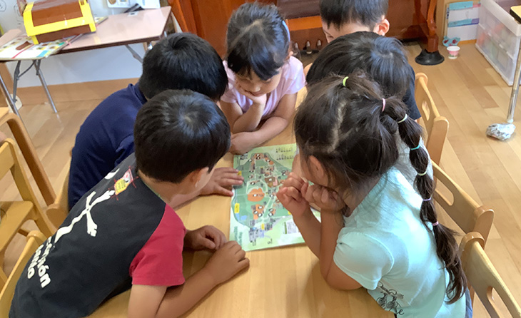子どもたちの発想力や想像力を生かして暮らしを創り上げていくことを大切にしています。園児たちの「これがやりたい」という気持ちの実現に向けて彼らが話し合うことのできる場をもつこともしばしばあります。子どもたちはその目標に向かって職員に必要な材料等の相談をし、残りの作業は大人の手を借りずに試行錯誤しながらも全て自分たちで行います。また、暮らしの中で主体的に自分たちの生活する環境を整えようとする様子が見られます。自分勝手になることなく他人をおもんばかる考え方ができることが子どもたちの本来もっている素晴らしさだと考えます。